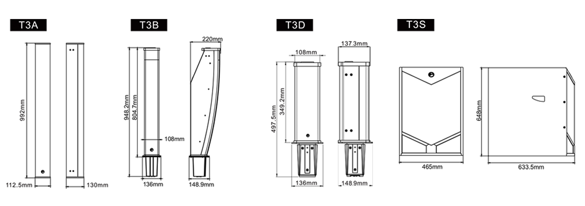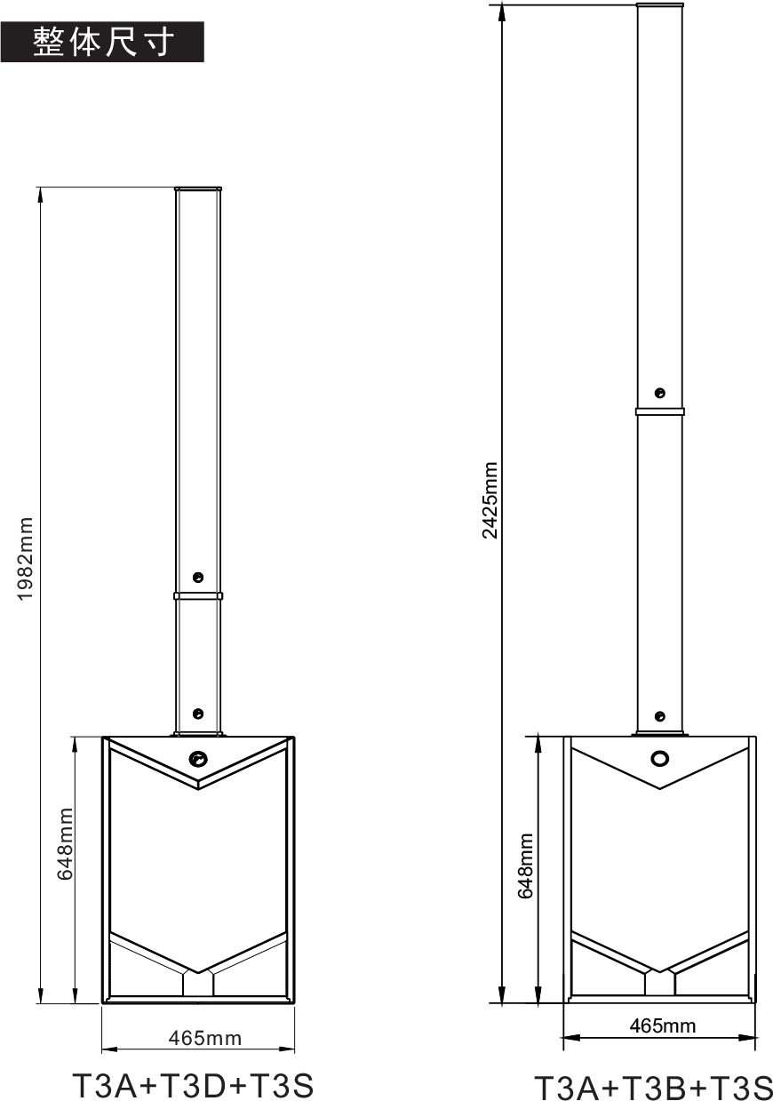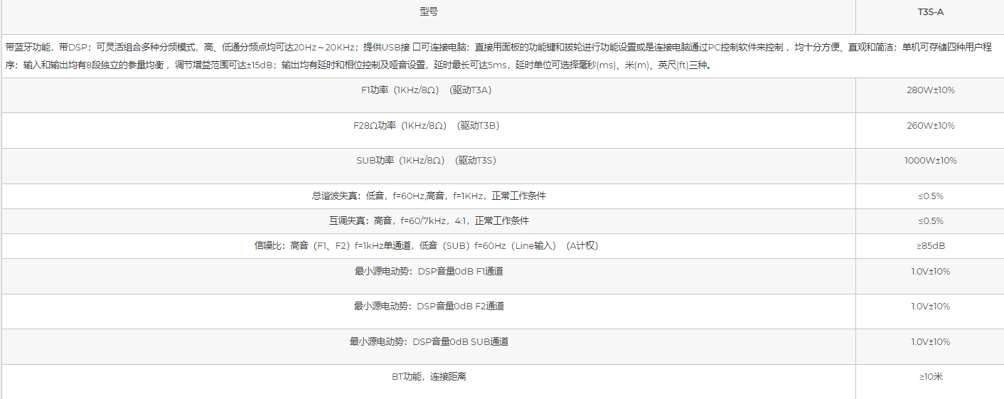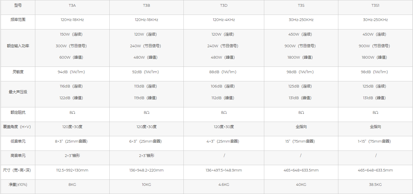 · 其中T3A、T3B、T3S可以方便的组合成T3无源音箱系统