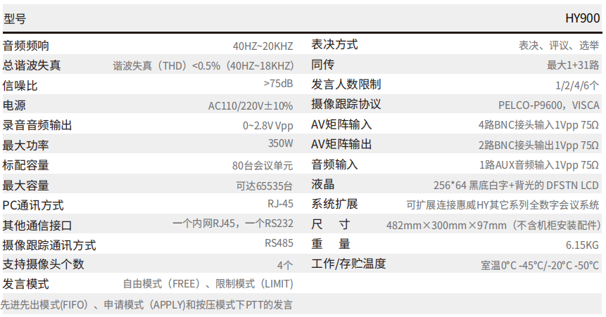 HY900DV:在HY900DF全功能代表基础上取消同传功能,外观与其余功能一致。