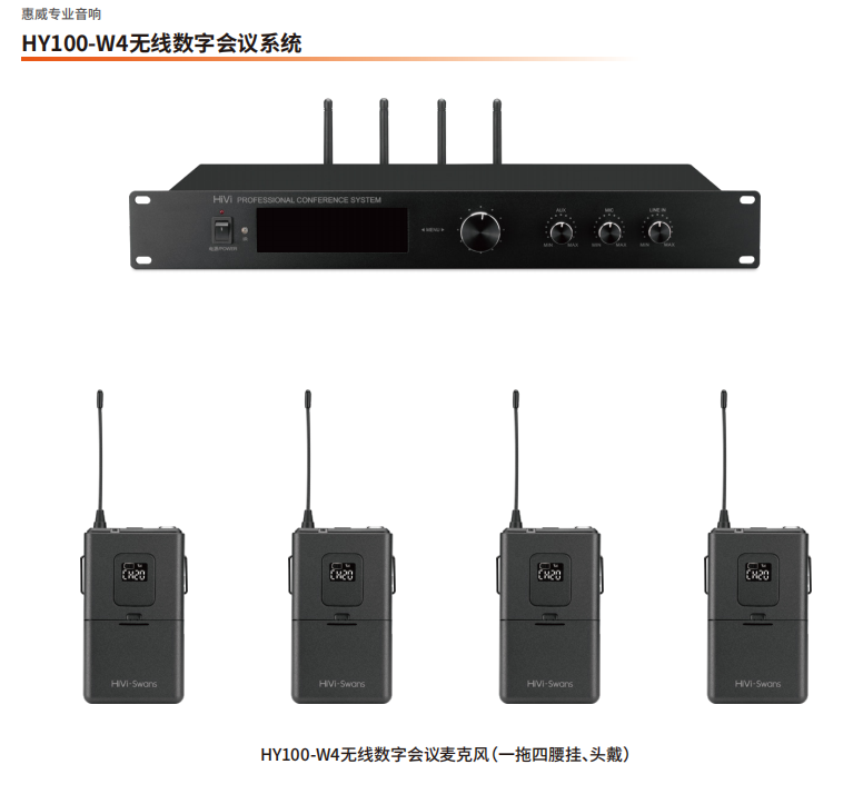 惠威HY100-W4 领夹式/头戴式一拖四腰挂无线麦克风套装