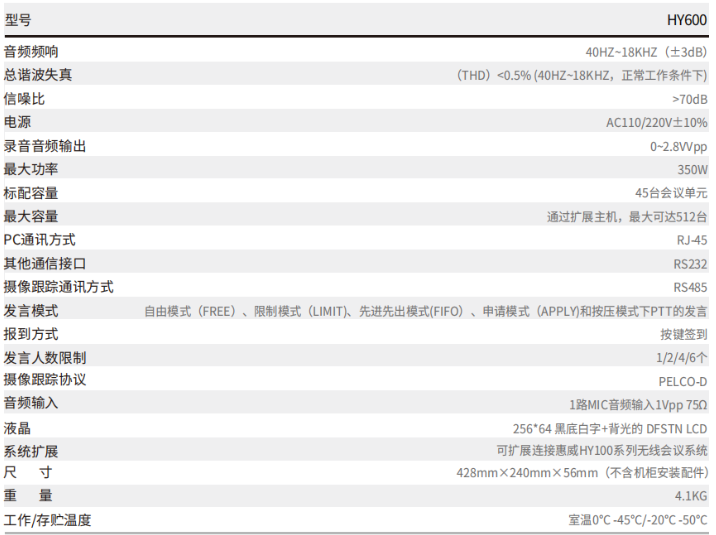 10. 联机模式下,支持PC对会议设备管理、会议议程控制、会议参数设置和终端发言管理功能。