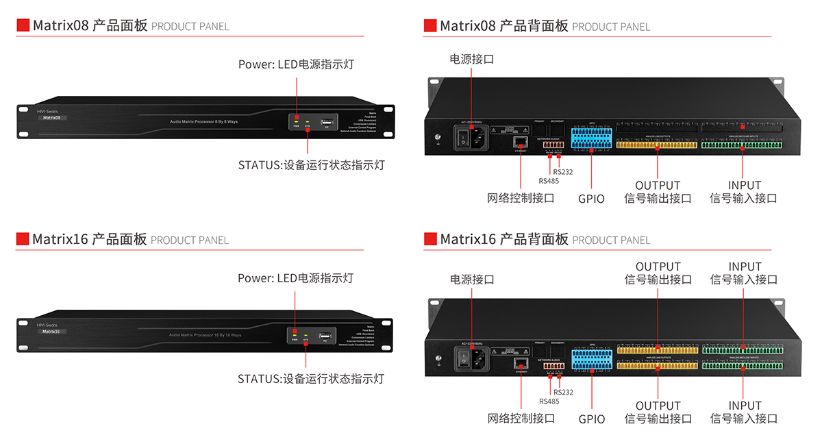 1、多路平衡式话筒/线路输入,多路平衡式音频输出,采用凤凰插接口;